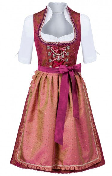 Beautiful Berry, this dirndl is going to be a fest favorite. This dirndl measures 65cm from the natural waist to the hem. Dirndl is made from Cotton and imported from Germany